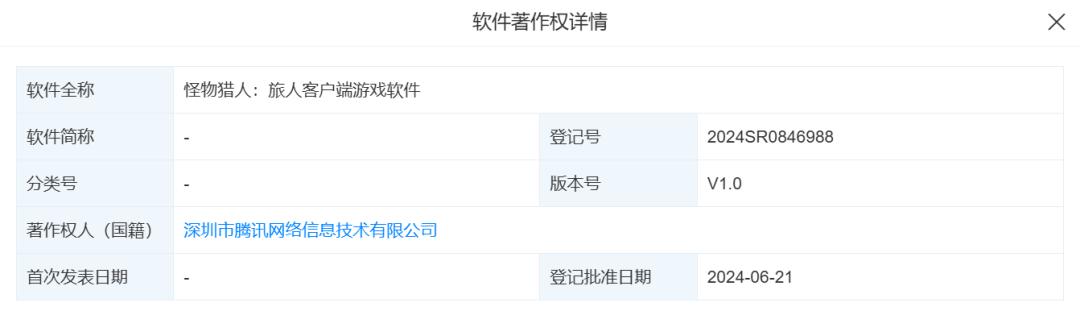 據天眼查,今年6月騰訊還註冊了《怪物獵人:旅人》軟件著作權。