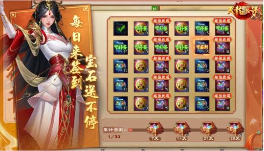 官方特地爲玩家算了一筆賬,在寶石簽到中,玩家就可以獲得:125個低級寶石寶箱(必得1級或者2級寶石)、75箇中級寶石寶箱(必得2級或者3級寶石)、6個高級寶石寶箱(必得3級或者4級寶石)、500金交子,總價值約30顆3級寶石。