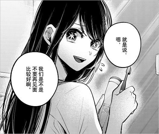 但事實證明,星星眼的設定可能只是赤坂拍腦門的產物。可以看到在證明獨特性時,星星眼被其他人成功模仿,而在證明黑化時,星野露比又在兩格內完成了黑星到白星的轉換。與其把它當作一種貫穿始終的設定,不如直接把它看成心情晴雨表,要來得實在。