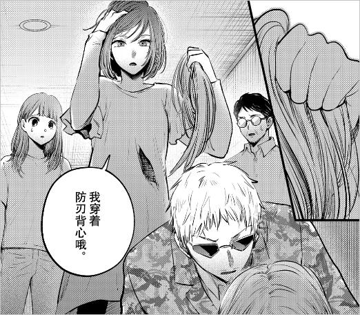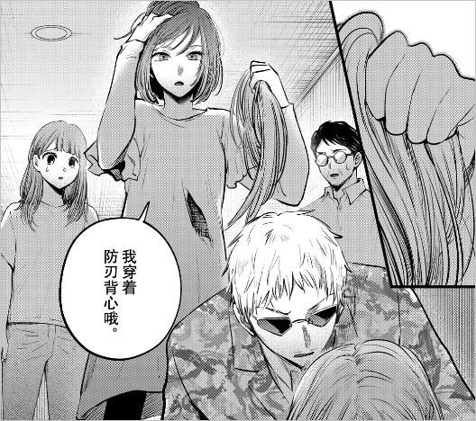 主角團預料渣爹會對露比痛下殺手,所以提前讓阿誇的前女友、《推子》裏的五邊形戰士黑川赤音假扮露比,穿上防刃背心,等待前同事自投羅網。順便還給不知道防刃背心的大傢伙展示了一波容錯。