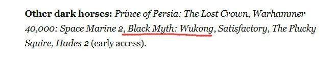 絕大部分的歐美媒體,會把黑神話獲獎的幾率歸在“黑馬”裏