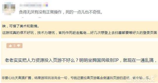 還有網友表示,老老實實把人力資源投入頁遊不好麼?明明坐擁國民級別IP,卻亂搞一通。