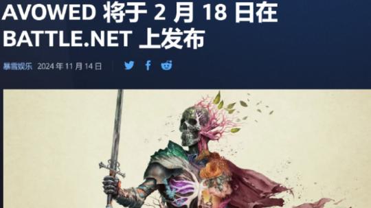 11月14日,暴雪娛樂罕見爲隔壁項目組黑曜石工作室的第一人稱奇幻角色扮演遊戲《Avowed》造勢,在戰網發佈了有關遊戲定檔2月18日,預購典藏版可以提前5天搶先體驗的消息。