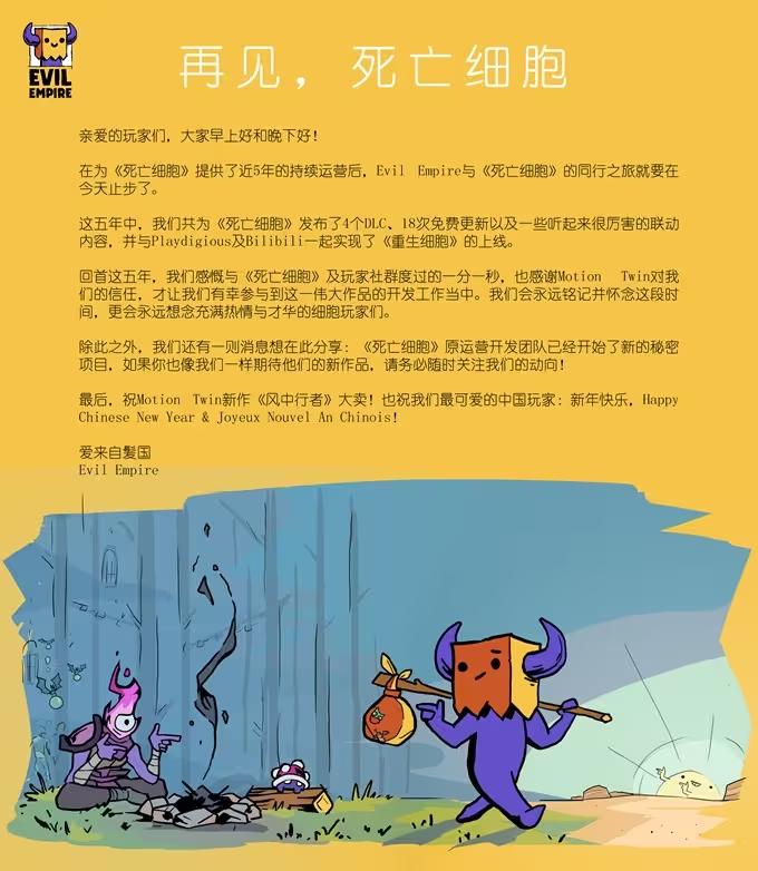 然而就在今年2月,MT非常突兀地中止了《死亡細胞》的後續開發,EE也不得不和他們一直維護的遊戲說再見。