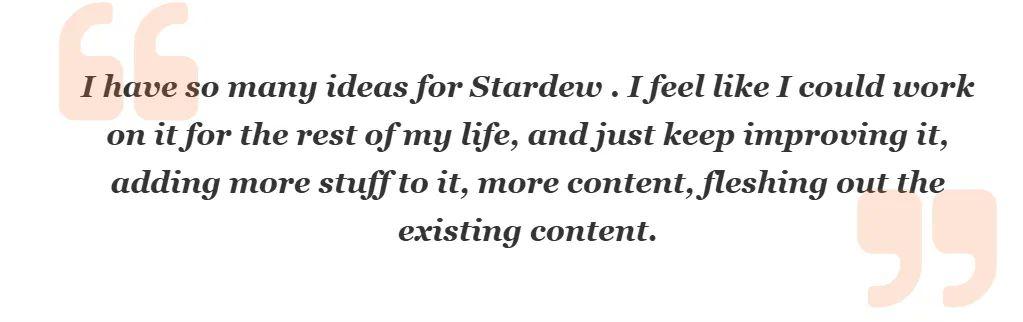 Eric Barone的發言:“我對《星露穀物語》有很多想法。我覺得我可以用餘生來做這件事,不斷改進,添加更多內容、充實現有內容。”