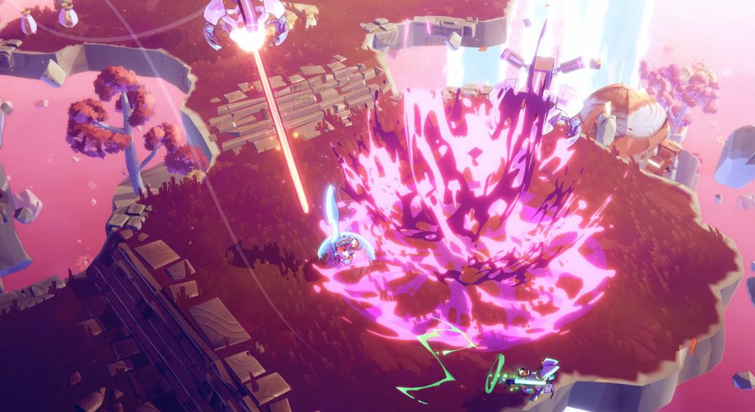比如在美術風格上,遊戲採用了一種非常明亮鮮豔的卡通渲染風格。遊戲中的場景基本都是浮空島嶼,在3D俯視角+預設視角旋轉的配合下,這個世界就像一個巨大的玩具模型般精巧可人。