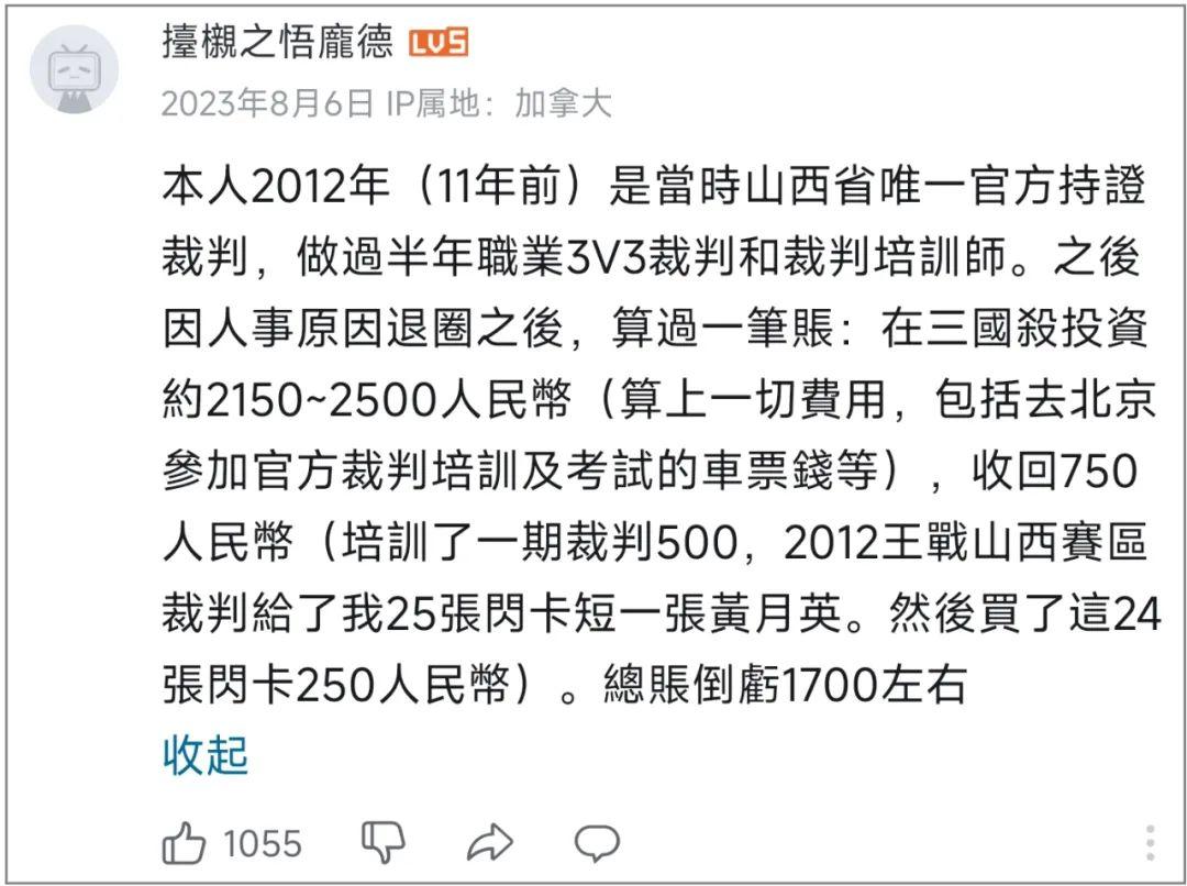 達到業餘8段,可以加入次級聯賽SDL,達到專業一段則可加入頂級聯賽SCL,和章武大帝同臺競技。但只要你通過了等級認證,就能拿到一個看起來相當精美的職業證書。並且非常有逼格的就是,你的段位還會在遊戲裏顯示,爲這碟醋包餃子了屬於是。所以,該解決第二個問題了。有如此權威的機構背書,那麼位於《三國殺》金字塔頂端的職業選手們,能賺到多少錢呢?先給大家提供幾個可能的選項,大家覺得《三國殺》職業選手的收入更接近於哪一種人呢?接下來揭曉答案。據前《三國殺》職業選手,B站UP主“三國殺絕對技術”透露,每年SCL的比賽獎金有接近100萬元,根據名次分配給各個俱樂部。以2022年爲例,8傢俱樂部中冠軍分得20萬,再加上籤約費、廣告費、基本工資,似乎是一筆很可觀的收入。然而根本就不是這樣。哪怕你是冠軍選手,這20萬元,其實是俱樂部而非你個人的收入。每支俱樂部最少有8個人,扣除意外所得稅後平分,每個人最多到手2萬。這2萬塊錢,就是你作爲地球上最強的《三國殺》選手之一,一年打比賽的所有獎金。而簽約費、廣告贊助和基本工資,是沒有的。沒錯,《三國殺》所有的職業選手,都沒有工資,也沒有任何贊助商花錢打廣告。也就是說,最高收入的《三國殺》總冠軍選手,平均一年也就能賺到2萬塊錢,甚至還不如小縣城隨便一家飯館的洗碗工。所以,沒有一個《三國殺》職業選手能靠打比賽養活自己。UP主“三國殺絕對技術”就表示,自己當了兩年職業選手,比賽獎金加起來也買不起一個馬鈞(價值4500塊)。而去年推出的武諸葛亮,人物+皮膚價格高達10萬。職業選手,僅靠比賽收入連英雄都買不起,放任何電競遊戲裏都是個堪比希特勒愛護猶太人的地獄笑話,唯獨在《三國殺》裏,這特麼是真的。用愛發電的不只有《三國殺》的選手們,可能連裁判也是。B站一位叫“抬棺之悟龐德”的網友,曾是山西省唯一的《三國殺》比賽執證裁判,退圈後一算賬,自己當裁判的時候還倒虧1700元左右。當然此事年代較爲久遠,放如今未必具有代表性。說到底,《三國殺》職業比賽淪爲笑柄,是一件既抽象又命中註定的事情。儘管在玩家圈子裏,流傳着“《三國殺》的職業門檻就是誰有空”之類的揶揄,但絕大多數情況下,選手們的水平肯定是強於普通玩家的。只不過,遊戲本身的平衡性和競技水平,實在難以撐得起“職業”二字,至少玩家們完全不認可。卡牌遊戲並非搞不了電競,《寶可夢》《遊戲王》《爐石傳說》都是現成的例子。但《三國殺》的商業模式,使得其不同武將之間的強度差異實在太大了。我也不是謙虛,本人現在業餘0段,只要你讓我玩武諸葛,我就有自信幹翻專業九段選手的標關羽,讓我一打十都沒問題,對面換成阿爾法狗我也沒意見。也就是說,競技層面的可操作性,被過度膨脹的角色強度無限壓縮。當選完武將,發完牌,勝負起碼已經決定80%了。而職業選手偶爾出現的操作失誤,也未必一定是技術拉跨。目前三國殺武將的將池已經達到了548個,包含大量售價昂貴的稀有武將。這種情況下,想熟練掌握所有武將的操作技巧,的確不容易。其實我覺得你哪怕光是認識幾百個三國時期的人名,都稱得上歷史通了。所以《三國殺》官方爲了解決這些問題,也開啓了一系列動作。其中最重要的是,單獨劃出了一個競技版本,在規則、卡牌平衡性等方面進行了大量調整,做到武將之間相對平衡,並且將池內的武將都可以免費體驗。然而新的問題接踵而至。比賽服與普通玩家日常接觸的版本有顯著不同,導致許多觀衆看不明白,也沒有觀看比賽的熱情和必要——因爲這特麼和我們玩的就是兩個遊戲。這從根本上,揭示了《三國殺》運營層面的矛盾。它試圖通過電競化維持遊戲關注度,打造公平競技的品牌形象;但又無法割捨氪金變強的商業模式,不斷推出捅破戰力天花版的昂貴新角色。它的電競生態,完全和遊戲本體無關,是個被單獨割裂出來的奇怪存在。當然也可能是爲了政府補貼,杭州濱江區對電競俱樂部、賽事和場館都有上百萬元的經費補助。選手賺不到錢,不代表遊戲公司和俱樂部賺不到。比賽平衡性如何,選手是否能賺大錢,說到底,反映的是遊卡並沒有把《三國殺》職業比賽當成一個真正的電競項目。並沒有加大投入,改善選手和俱樂部的營收,或是提供規範的場地,讓選手不至於在比賽過程中莫名其妙掛機,或是突然掏出米飯大快朵頤。換成隨便一款冷門電競項目,倒也算不上什麼笑柄。然而《三國殺》卻偏偏把大量心思,都放在了找政府部門背書、給選手頒發證書、打通段位系統等毫無意義的花架子上,把自己營造得格外高端和權威——真有點電競版皇帝新衣的味道了。