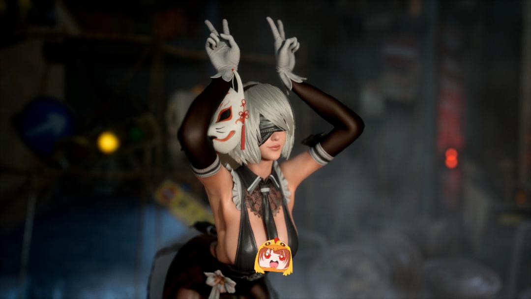 有着一頭中國人最愛的白毛,穿着高腰黑色開叉短裙的《尼爾:機械紀元》2B。