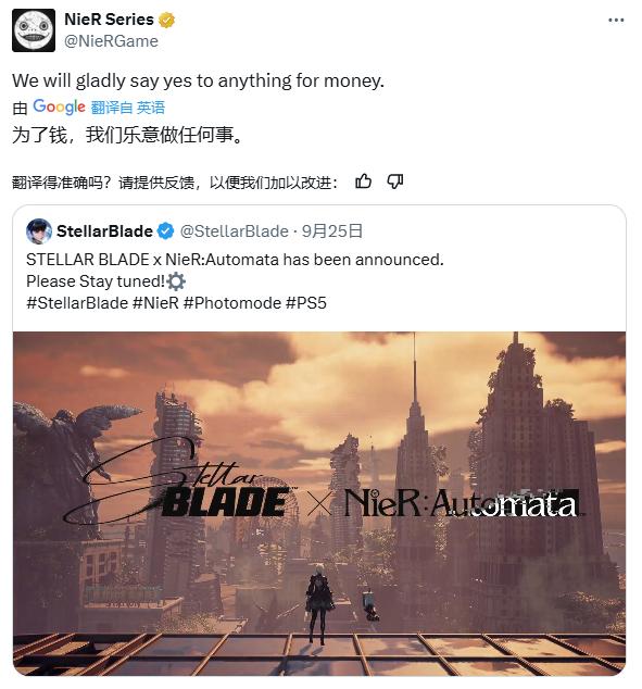 在官宣聯動時,《尼爾》製作人橫尾太郎就直言不諱地表示“只要錢給到位,願意做任何事情”。