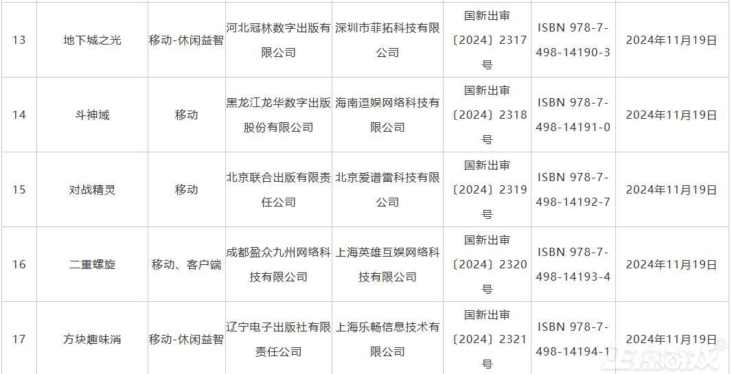 11月20日,國家新聞出版署官網發佈了11月國產遊戲版號名單。本次共有112款產品獲批,涵蓋了移動端遊戲、移動休閒益智遊戲以及跨平臺遊戲。