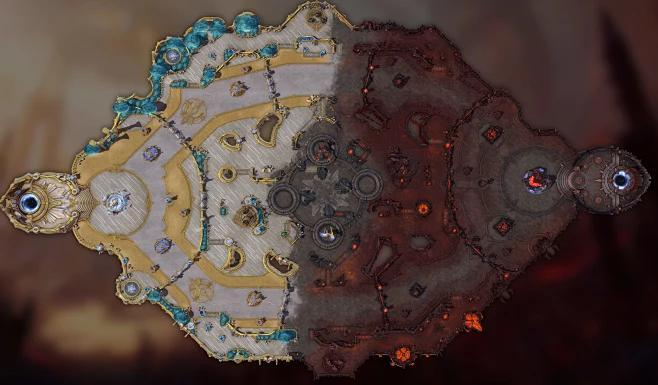 其次是地圖設計,在佔點圖中,雙方到達點內的距離是相同的,即使團隊被團滅,不同與風暴英雄,沒有戰爭迷霧的限制,返場也能比較清晰的知曉敵方的大致位置。對於比較不公平的AB佔點圖,暴雪的做法則簡單粗暴——直接刪除,對於推車圖這樣的重生點離據點距離雙方不一致的地圖,暴雪也爲弱勢方提供了劣勢補償:由於車輛是向着弱勢方出生點進行推進,所以進攻方車推的越遠,防守方(弱勢)則能夠更快返回戰場;反之,進攻方(弱勢)難以推進,車輛回退,則防守方需要更長的趕路時間來返回戰場。
