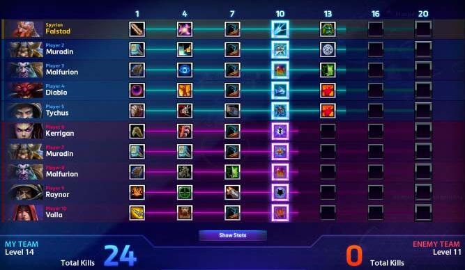 第三個不同則是局內等級系統的差異,風暴英雄取消了單人的等級系統,取而代之的是團隊等級——雙方的團隊等級被顯眼地放置在畫面頂欄中間,雙方團隊在擊殺敵人與野怪、補兵以及完成任務後,都會增加相應的經驗值,團隊經驗值每升一級,團隊裏面的所有人才會跟着升級,其次是裝備系統的取消,在風暴英雄中,取消了經濟系統,與其說是取消,倒不如說是將經濟與等級系統融合爲了技能天賦系統。團隊化的經驗設計則要求玩家各司其職,快速提升團隊等級來獲得等級上的優勢。