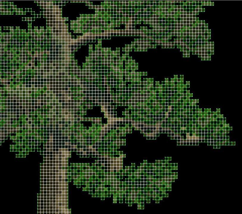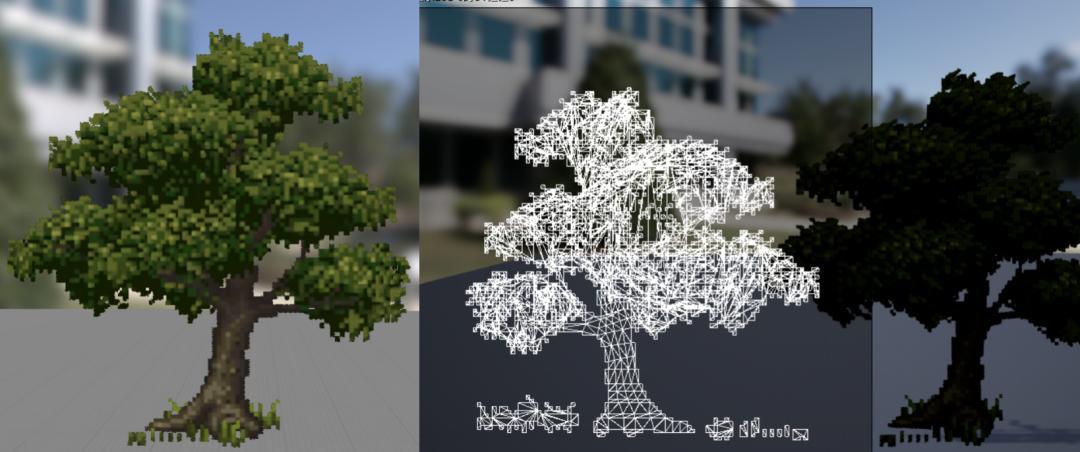 植被的建模也需要做一些特殊的處理,來達到真正的復古HD-2D效果,下面我以樹來舉例。我們的樹並不是按照真實3D的建模方式去建模,首先是根據2D的繪製,將模型點陣化,然後進行分層。