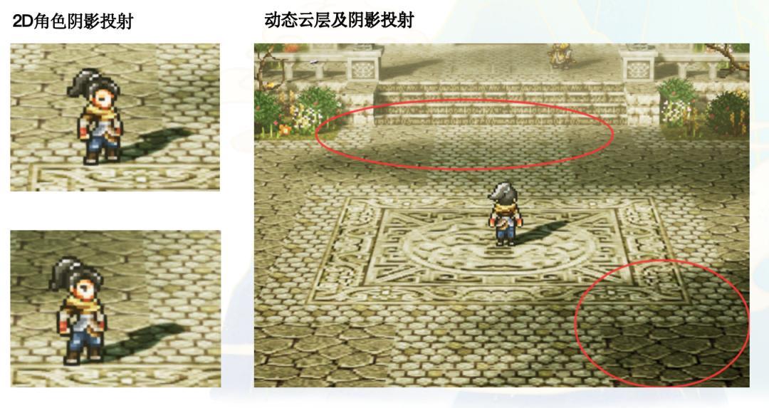 首先是光照陰影,可以看到無論是在2D的角色或3D的植被動態中,地面的陰影都是根據太陽光角度實時運動的,大大提升了視覺感。