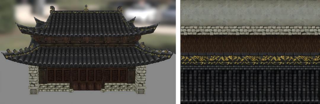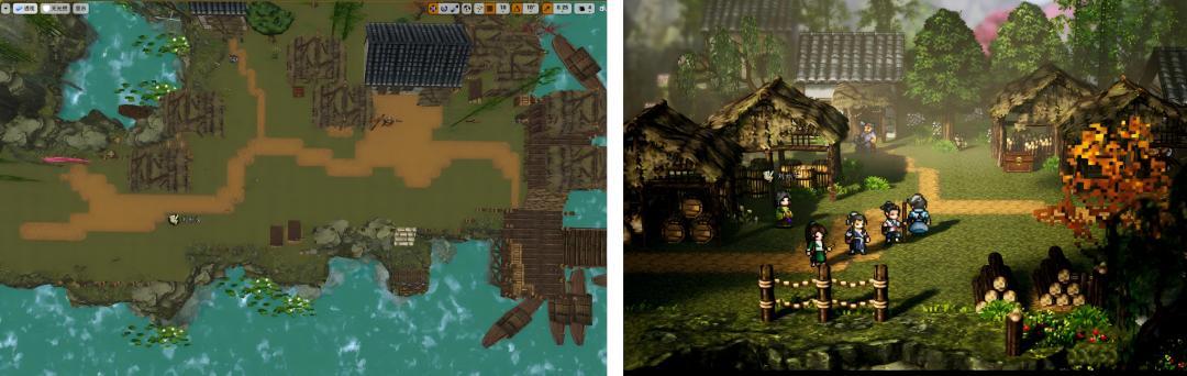 建築上我們也遵循了HD-2D的像素復古風格,所以建築實際上是3D建模模型+像素貼圖。