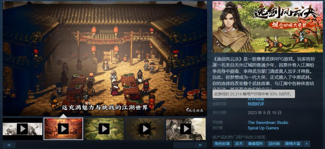 《逸劍風雲決》是一款於2023年上線的像素武俠RPG遊戲,在Steam上收穫了兩萬人93%的好評。