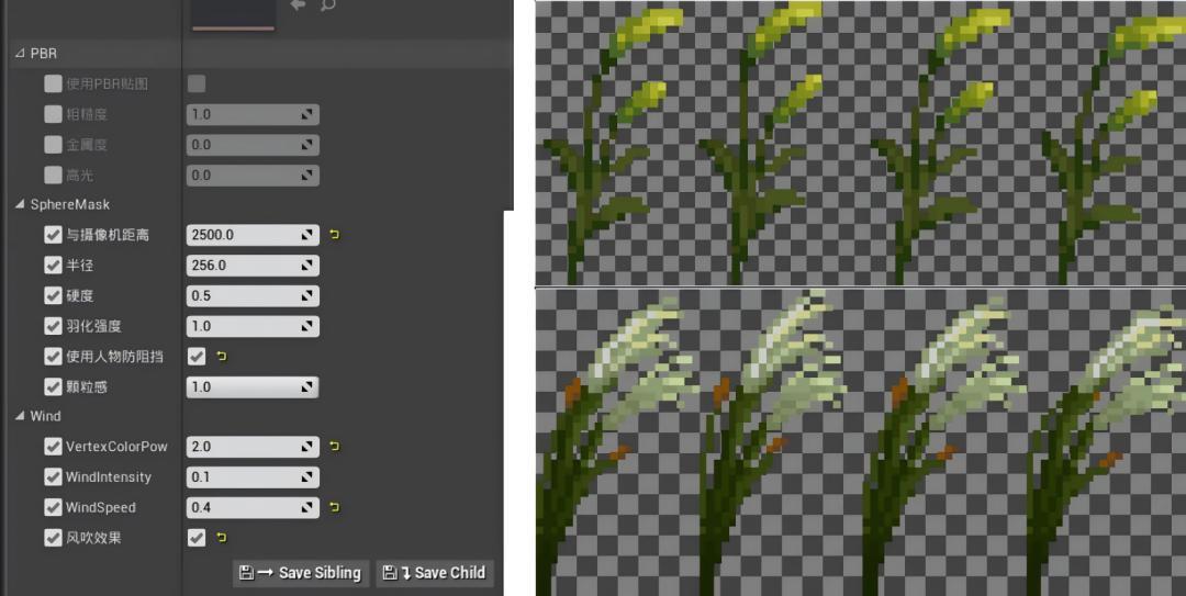 植被的動態分爲兩種,一種是使用藍圖製作的風力動態效果,而另一種則是傳統的像素幀動態,這樣的結合下來效果是非常好的,也是3D動態和傳統2D動態的一種融合。