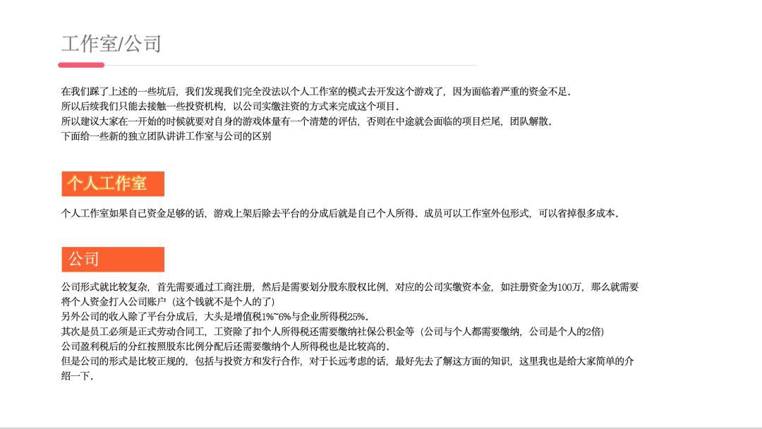 另外,對於投資方的選擇,如果項目還不完全確定,可以先把遊戲的核心玩法完善,再去尋找適合的投資和發行合作伙伴。通常天使投資人佔股比例不會太高,除非項目有很大的資金需求。