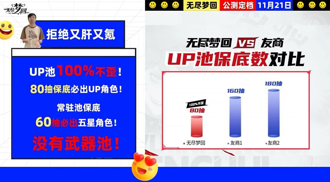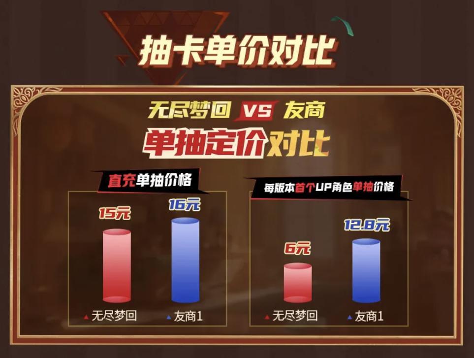 而且臨近上線前兩週,《無盡夢迴》還打起了“商戰”,明晃晃地放出了機制相關的承諾,和幾張付費模式的對比圖,宣稱要把價格打下來……這透着一絲微妙氣息的宣發,加上製作人的出鏡整活,又成功吸引了一些目光。視頻也在B站和快手都登上了熱門榜。
