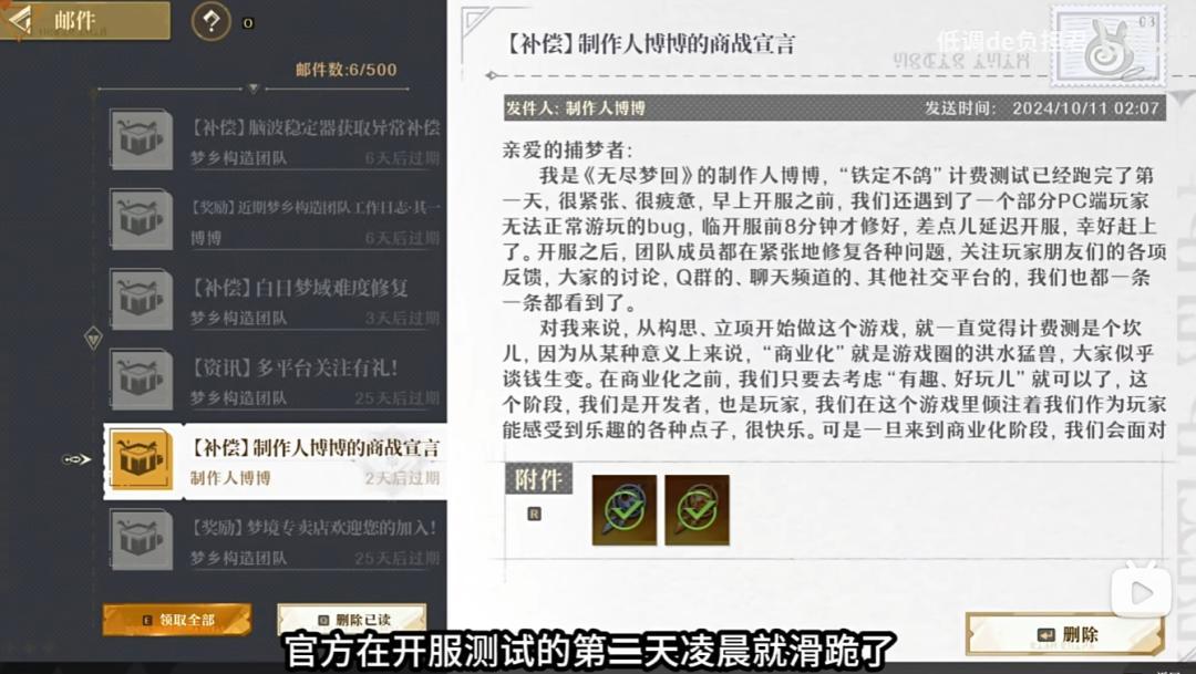 上次測試時,有玩家反饋付費問題、福利不夠之後,製作人直接第二天凌晨發信補償,還做出了“商戰宣言”……
