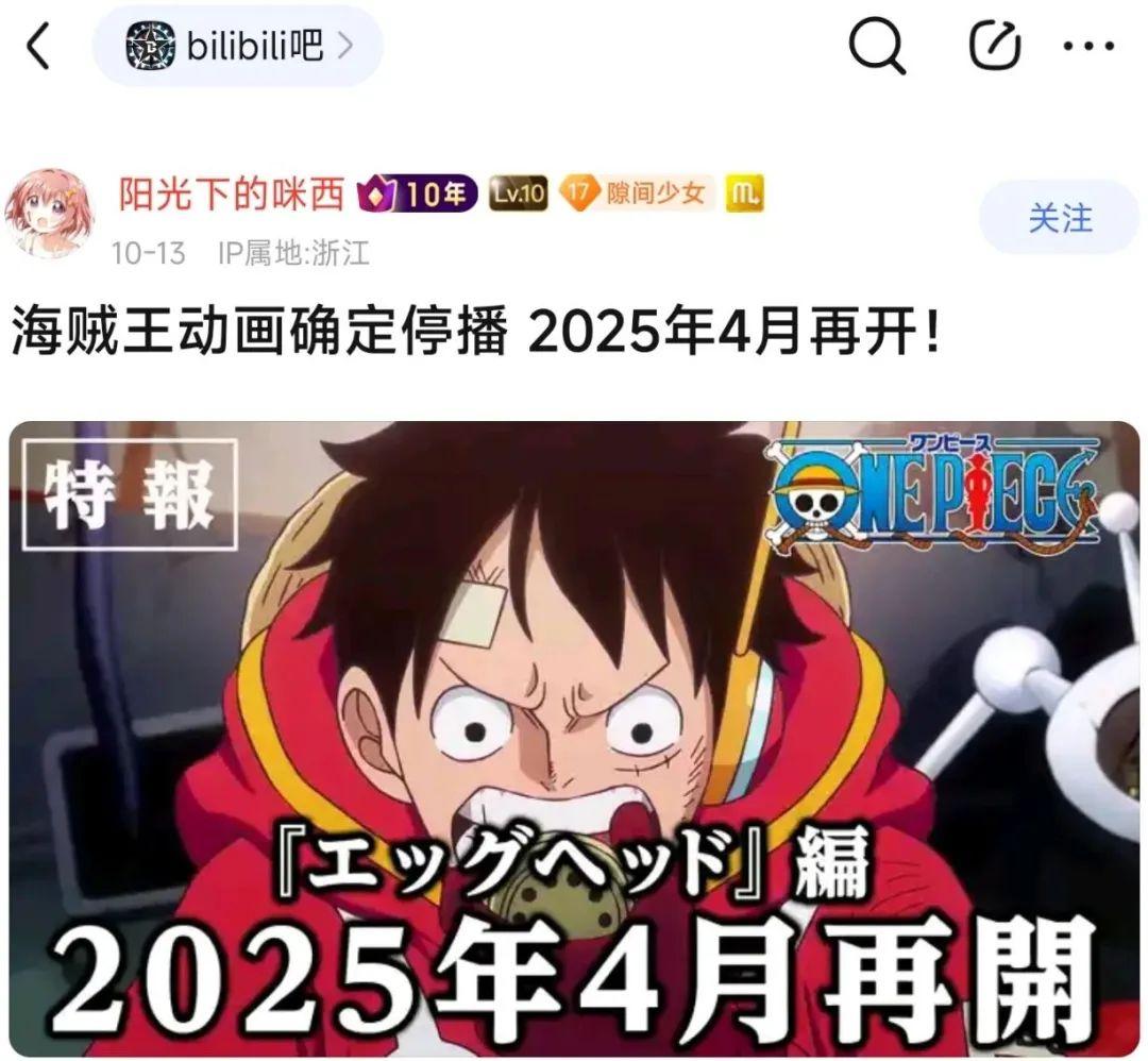 10月13日,《航海王》動畫宣佈進入長達半年的停更期,一直持續到2025年4月;而在上週,原作漫畫也同樣迎來半個月的休刊。動畫漫畫雙雙停更,《航海王》這個ip,算是步入了近年來最冷淡的時期。