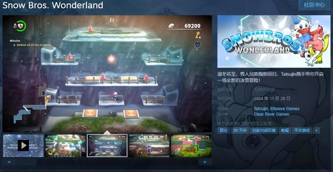 經典遊戲新作《雪人兄弟:仙境》Steam頁面上線,預計於11月28日發售,遊戲支持簡繁體中文。