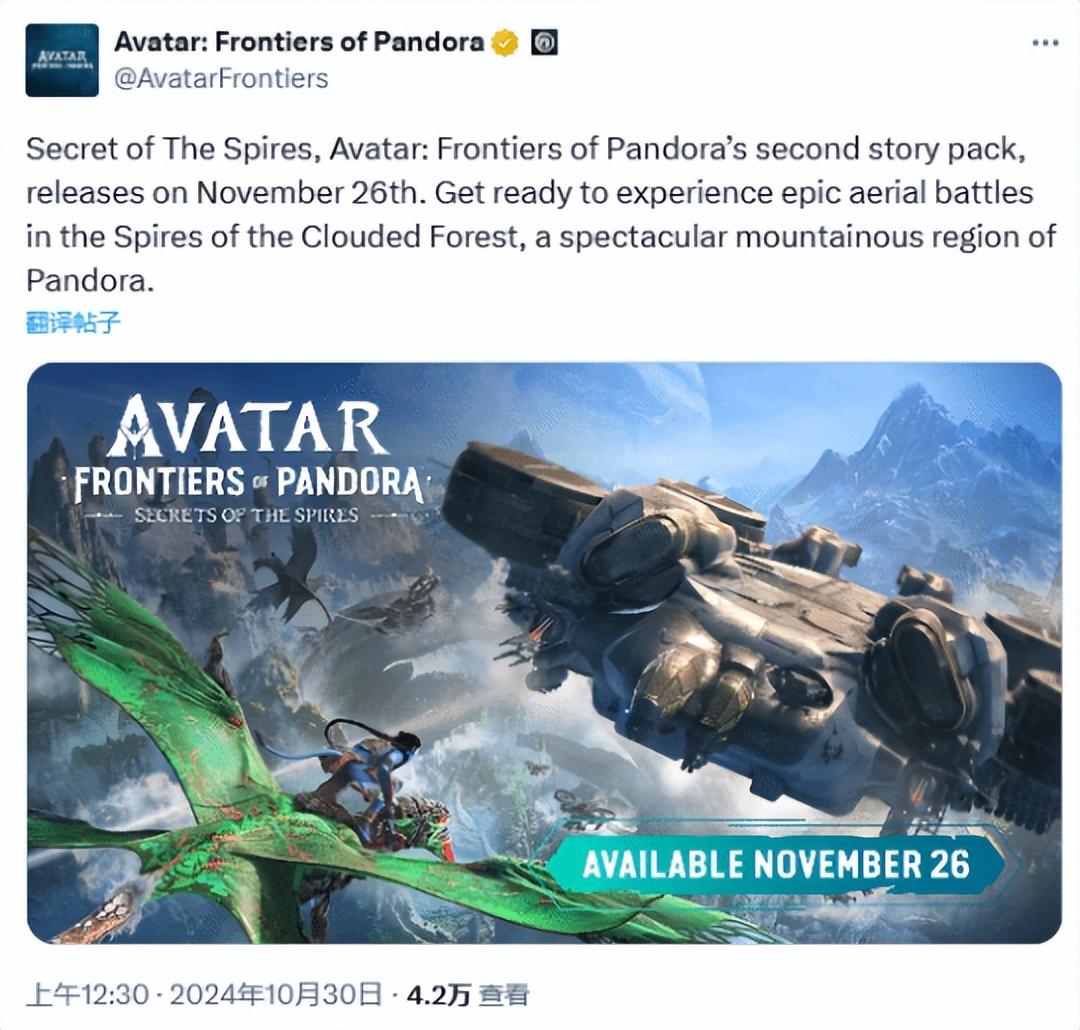 《阿凡達:潘多拉邊境》於2023年12月6日發售,雖然是大IP大製作,但顯然遊戲銷量欠佳,所以此次DLC的關注度也並不算高。