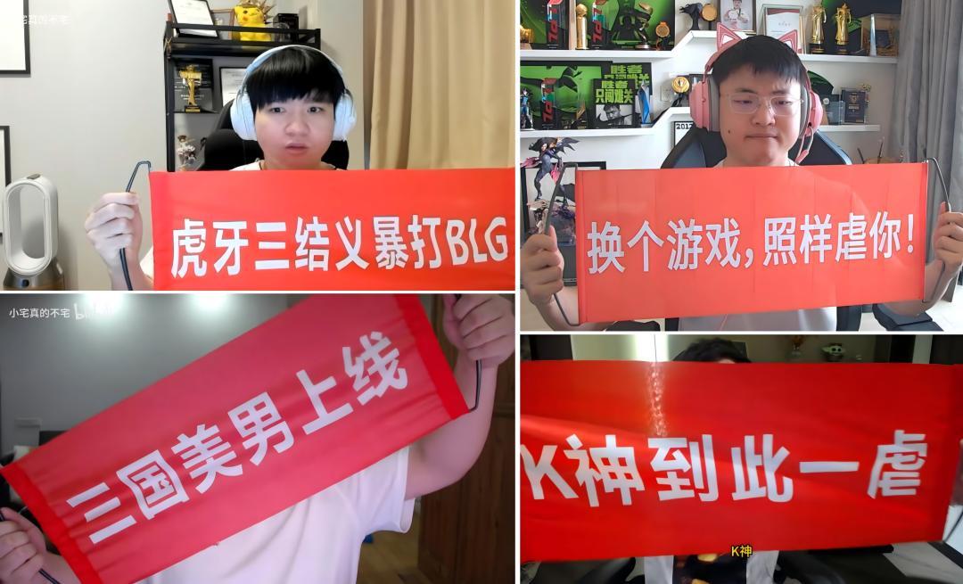 這比賽還能叫老頭杯嗎?可能得叫霸業杯。再加上有了需要共同面對的強敵(BLG),笑笑、Uzi、水晶哥等主播很快就不嘻嘻了,開始認真起來。幾人先是在直播中表示已結義組成老兵聯盟,並提前準備好了狠話橫幅,這次必須把BLG拿下;