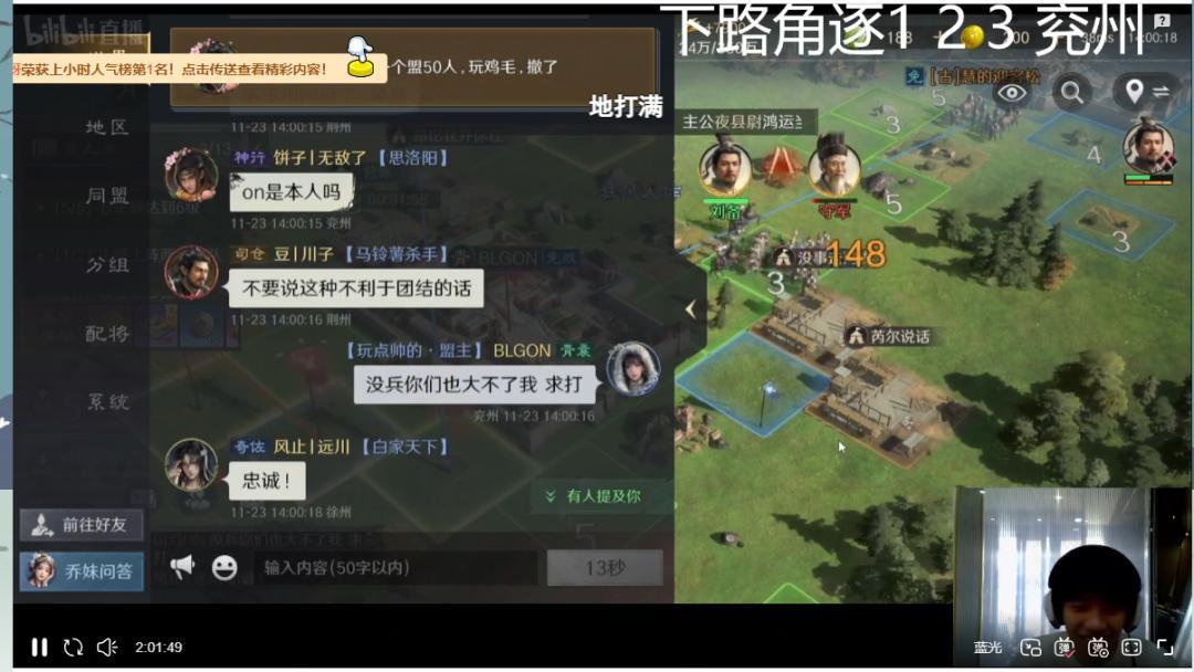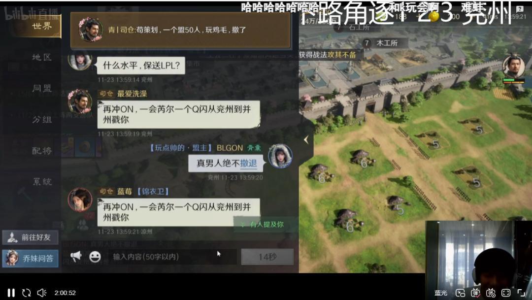 當然,LOL選手在《三謀》裏對線,總會產生一些意料之外的直播效果。比如開服沒到一個小時,笑笑還在直播詳述攻打ON的戰術,回頭一看已經有水友來偷自己家了,趕緊大喊:“別打啊,我們在直播啊不能輸這麼快!”;另一邊的ON倒是很泰然自若,甚至還有心情在世界頻道放狠話“求打”“真男人絕不撤退”……
