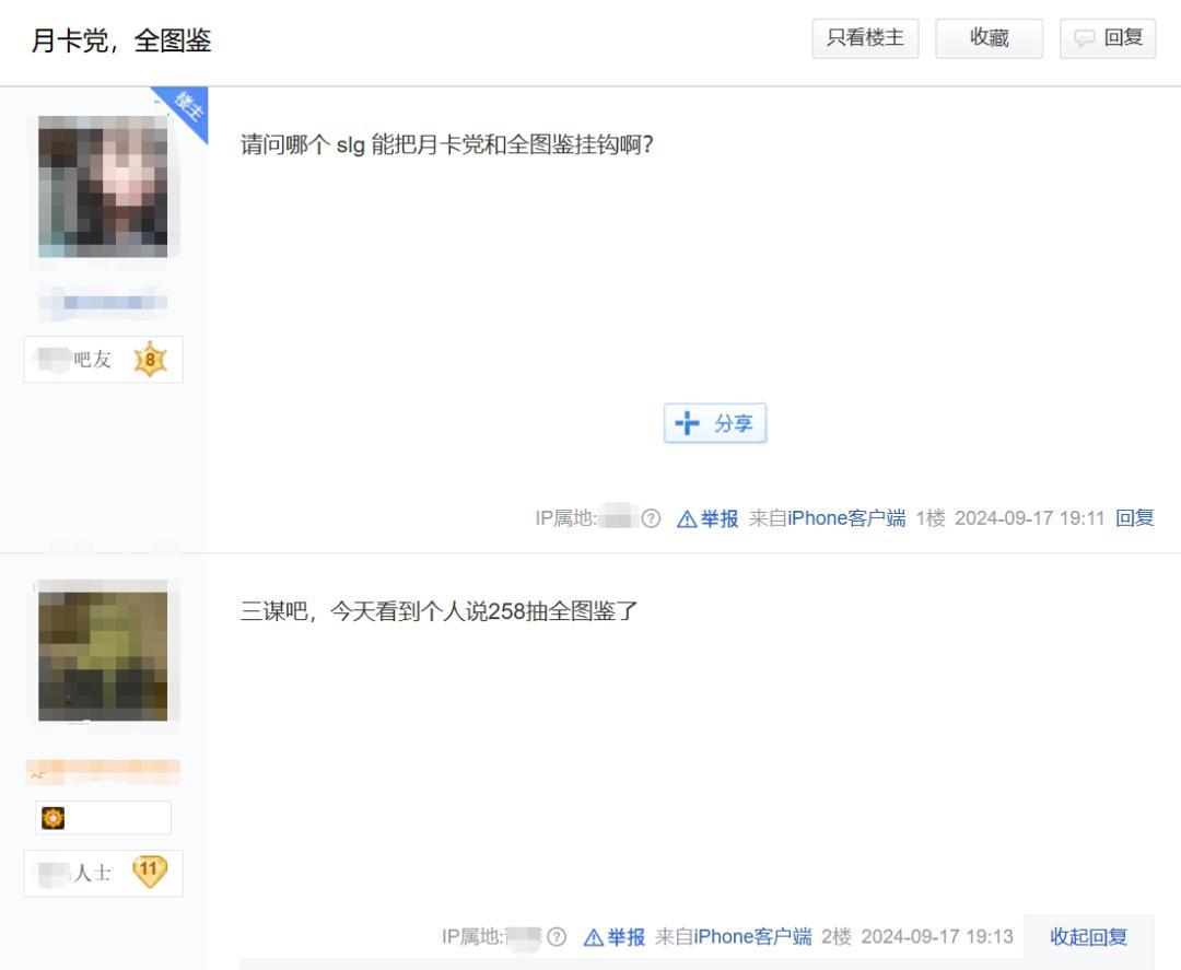 第一,《三謀》的產品設計,本身就更面向泛用戶,走的是平民路線,譬如降肝降氪等等。甚至,有《三謀》玩家僅靠月卡就抽出了全圖鑑。關於平民化這點,我們此前已經寫過很多文章講過,在此就不做展開了。