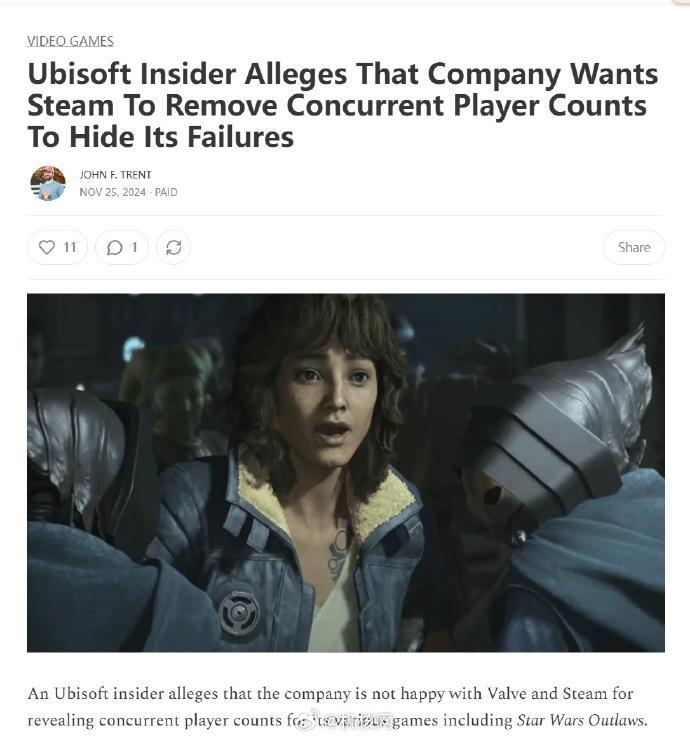 而內部人士解釋稱,這種擔憂源於育碧希望控制其遊戲銷售的外部表現,尤其是向投資者呈現的方式。所以正和其他公司一起向Steam施壓,並停止展示這些保密信息。