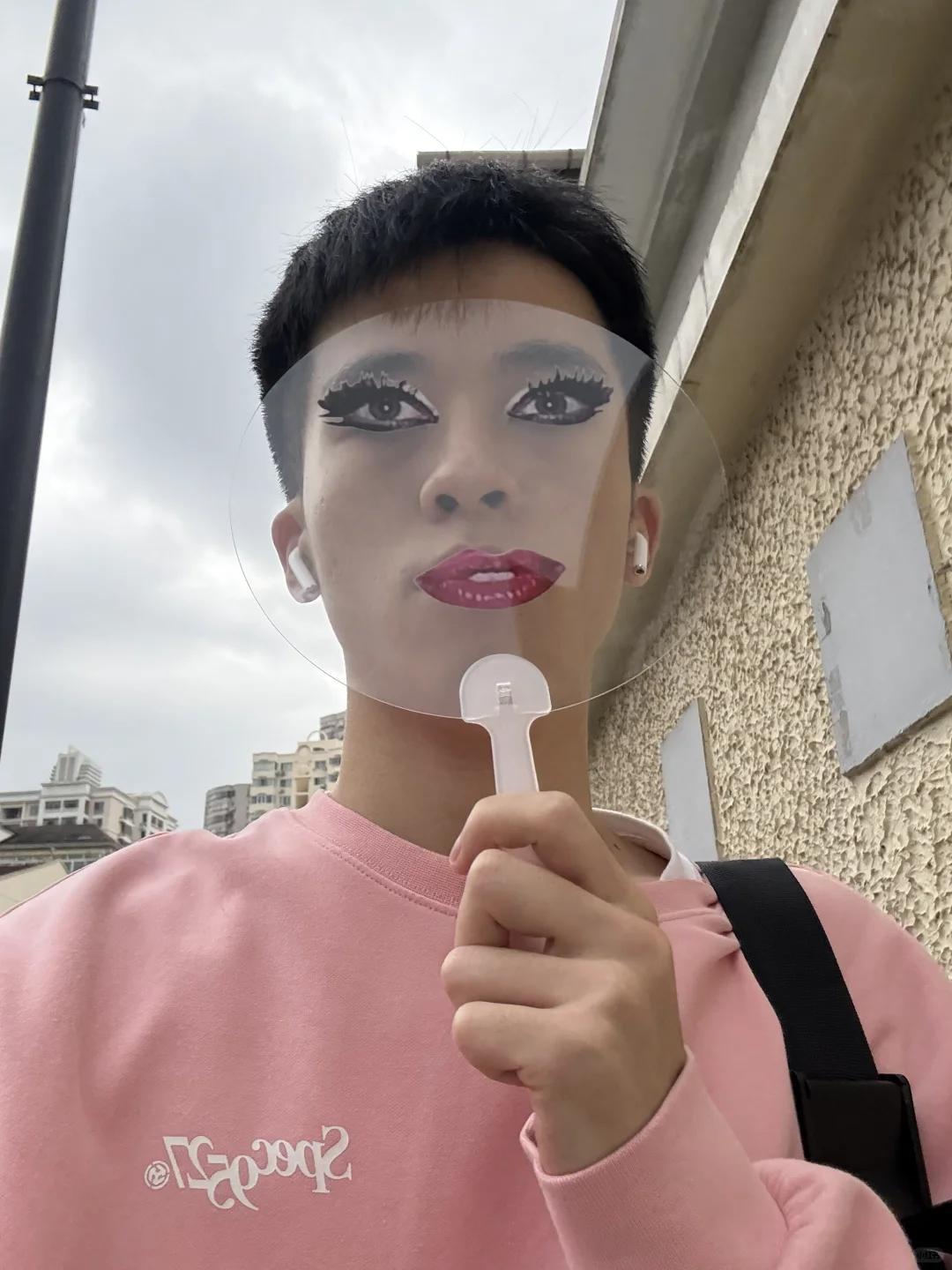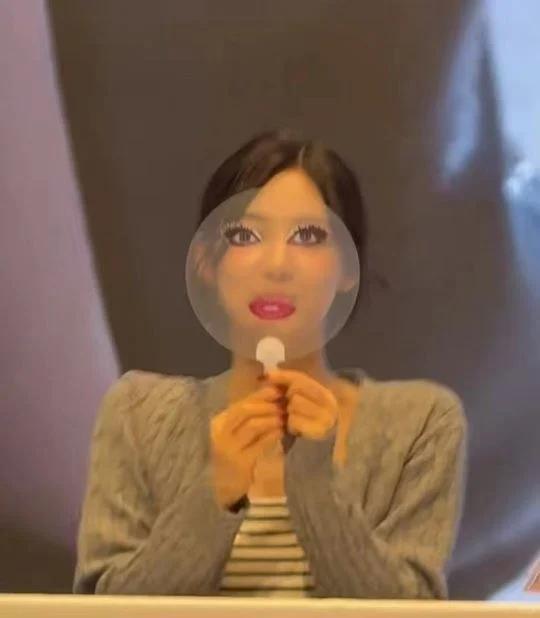 但這個梗圖的生命力不僅僅只是停留在2維平面上……網友們的整活能力讓它再次煥發新生。譬如:把它做成透明的扇子,然後像面具一樣使用。
