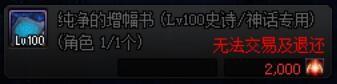 售價2000不渝之詠,每個角色限制兌換1個,屬於必換道具,跨五拍賣行中純淨的增幅書的售價在5000W金幣以上,屬於角色福利,非常划算。