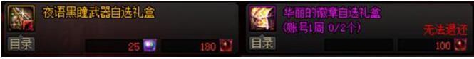 夜語黑瞳武器的外觀都比較拉風,是幻化的不二選擇,有興趣的小夥伴們可以收集一下;徽章不足的玩家,也可以在普雷商店中使用100個材料兌換華麗徽章自選禮盒,每週限制兌換兩次。