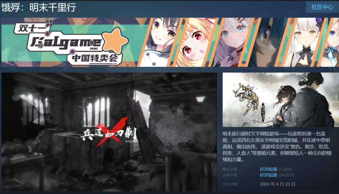 他過去的經歷集中在網文和漫畫方面,在2020年開始做遊戲。以原創漫畫爲原型創作的第一款遊戲《葬花:暗黑桃花源》首周銷量達25000份,現在已經賣了15萬份,Steam好評率96%。第三款遊戲《餓殍:明末千里行》於今年4月上線,目前好評率96%,賣了84萬份。即使以初上架的折扣價29.6元人民幣來算,現在流水也有兩千多萬。