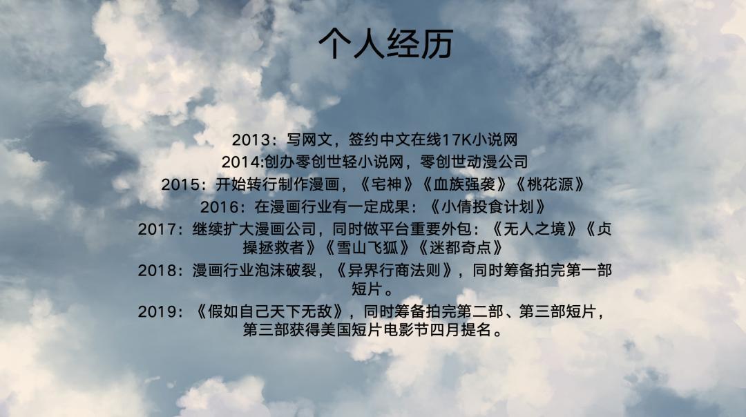 2014年,我創辦了零創世輕小說網,還創辦了自己的動漫公司。當時我們的網站是國內第二個輕小說網,零創動漫公司則主要與騰訊動漫和網易漫畫合作,推出了一些作品。