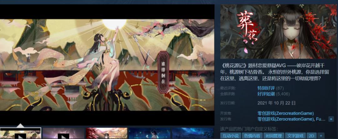 遊戲上線後,首周銷量達到25000份。《葬花》的主題是一個暗黑版的桃花源故事,靈感來源於2015年我創作的一部同名漫畫。