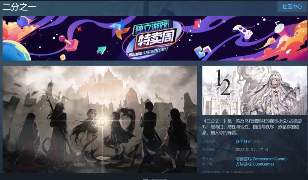 接下來這款產品是我們銷量最差的一款,也是投入最大的一款——《二分之一》。這是我們第一次嘗試玩法型的遊戲,總投入大約300萬。