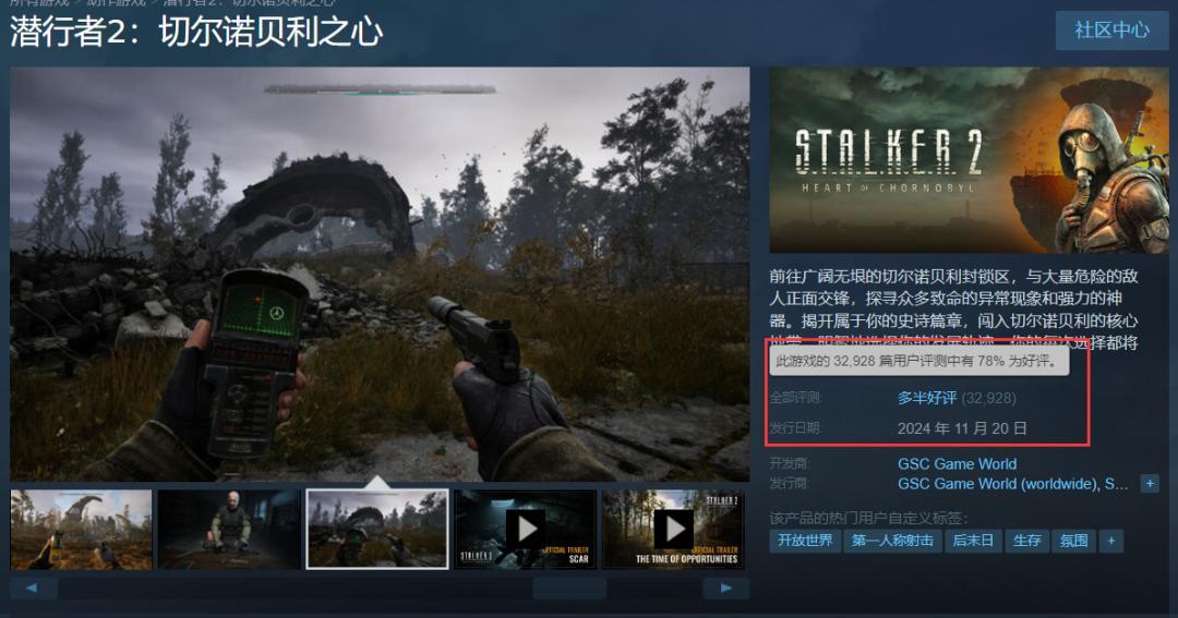這些勸退的問題,加上爲了復古而做出來的一系列硬核設計,讓《潛行者2》很難合那些“習慣了快節奏FPS的當代玩家”的胃口。所以,現在《潛行者2》表現出來的成績,除了遊戲荒的玩家日常買大作以外,更多還是依靠老潛行者們的情懷來支撐。