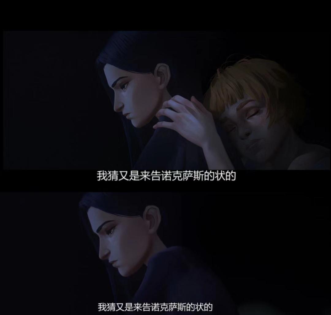 這一幕看起來非常詭異,就像凱特琳睡覺落了枕,不得不歪着頭說話。或是兩人已陰陽兩隔,纔會在共同經歷那麼多事情後連一個同框鏡頭都沒有。不管怎麼找補都非常奇怪。