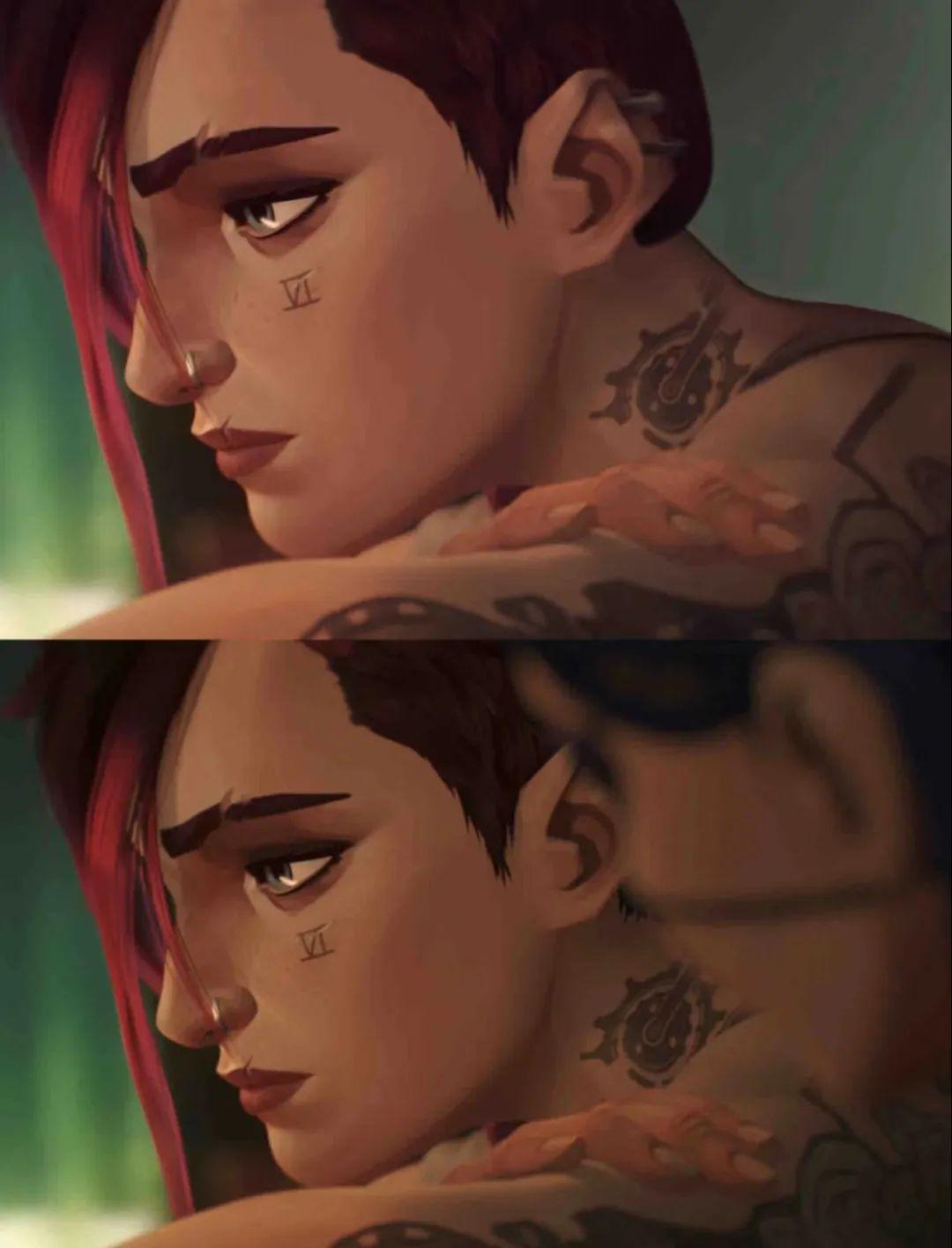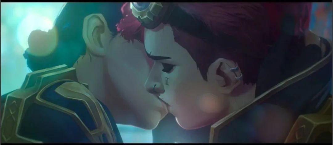 如果你看過國外版本,就會發現,凱特琳和蔚其實互相依偎在一起。