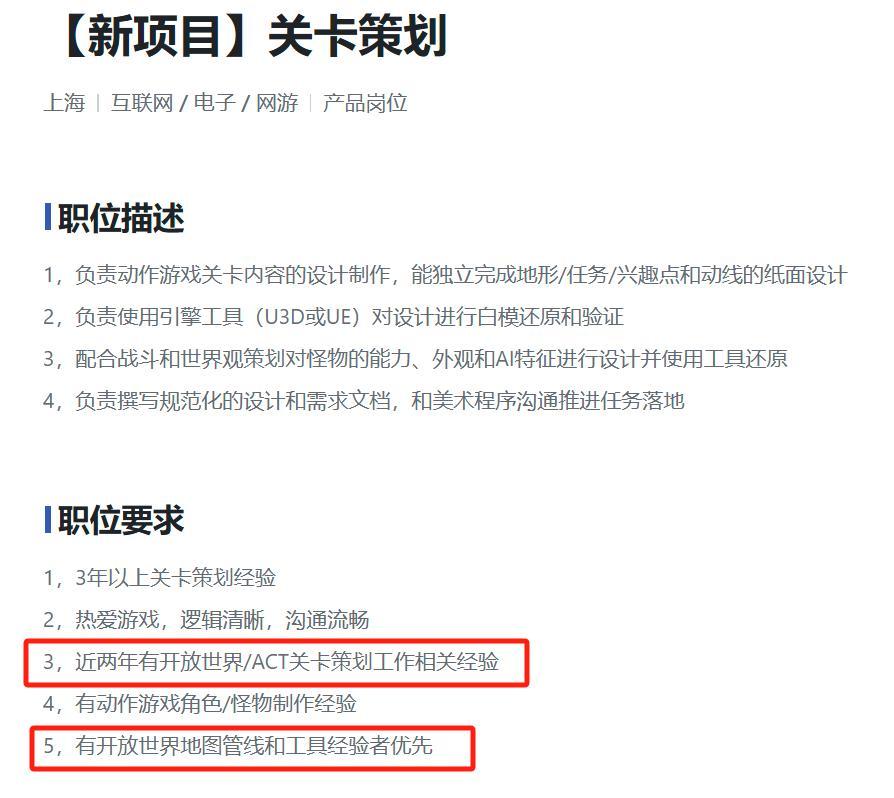 沐瞳的多個崗位還標註了競技、輕競技、新項目的標籤,關鍵詞涉及到了開放世界、ACT等等。