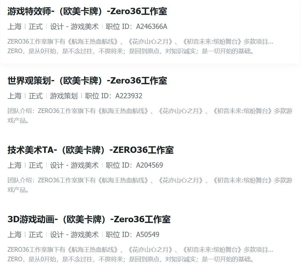 此前,位於上海的《航海王:熱血航線》《花亦山心之月》《初音未來:繽紛舞臺》三個項目團隊合併成了Zero36工作室,由陸凌青(Hades)擔任工作室負責人。