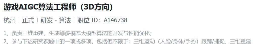 最後,字節遊戲還在謀求更先進的技術,以此推動新形態的遊戲產品。比如在AIGC和UGC項目的搭建上,他們就放出了大量技術崗位的需求。考慮到目前字節跳動在AIGC方面的整體探索,AI在遊戲領域的應用或許也會成爲公司的關注重點。