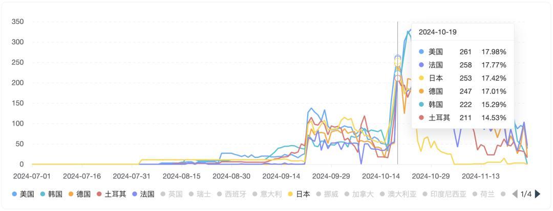 從投放市場來看,《Age of Empires Mobile》主攻對象是 IP 影響力更高且更有價值的歐美高地區,整體投放 TOP 3 爲德國、法國和美國。值得注意的是,臨近上線時,遊戲加大了對日韓這兩個 SLG 市場開發程度較高的地區的投入。據 SensorTower 報道,上線首日,除了登頂美國雙端下載總榜,遊戲還登頂了韓國 Google Play 下載總榜和日本 App Store 手游下載榜,可見對日韓市場的重視是值得的。