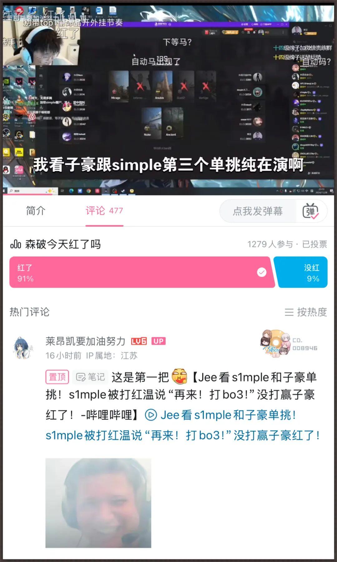 solo單挑打了好幾局,最後s1mple 31:30贏了以後,向屏幕豎中指,網上節奏直接炸了——後來視頻道歉並解釋了一下。