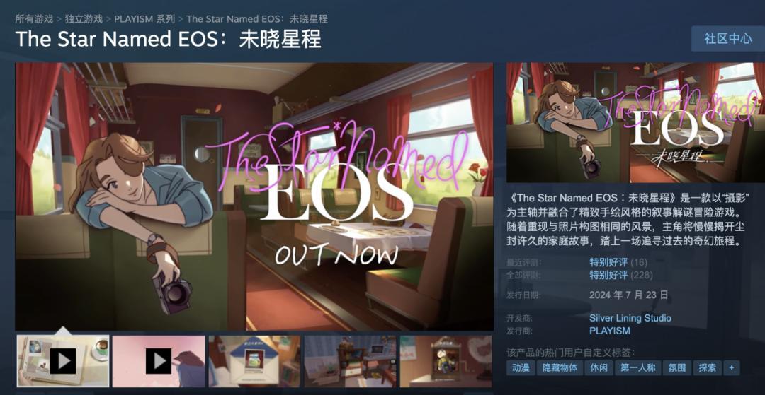 簡單推薦一個我最近買的解謎遊戲叫《The Star Named EOS︰未曉星程》,Steam售價¥46.40(-20%)。