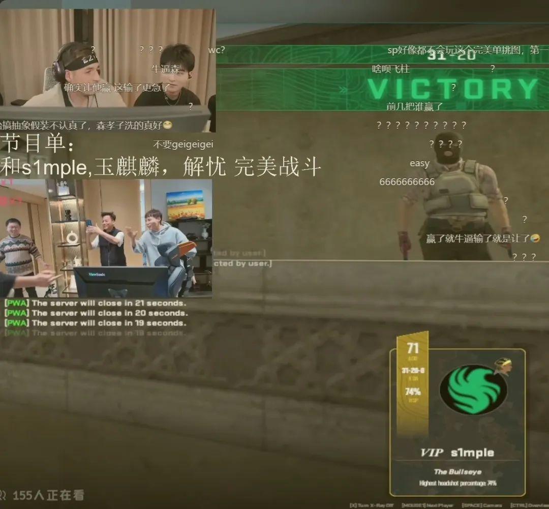 星彡P點評:s1mple因爲這次比賽沒游出去,最近應該挺閒的,瓦過幾天的娛樂賽還請了他。這下有樂子看了。