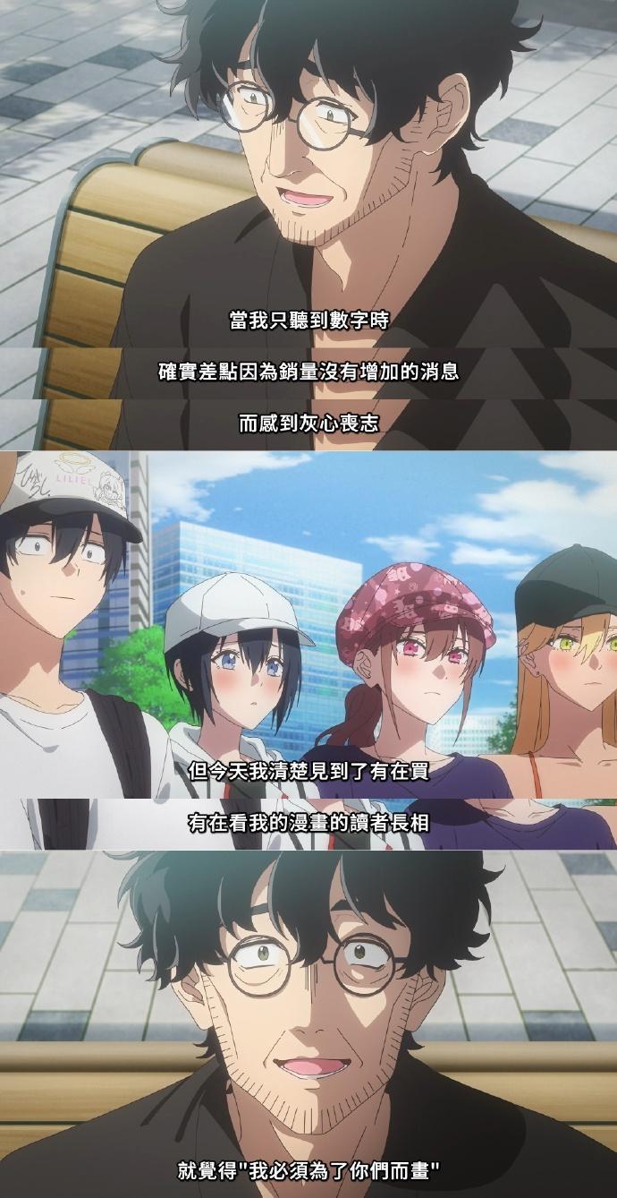 從冰冷的連載數據後,看到期待作品的粉絲,創作擁有了不一樣的動力。很多人把它看作是橋本悠的真情流露,因爲橋本悠自己,很有可能就是這個萬事不順漫畫家的原型。