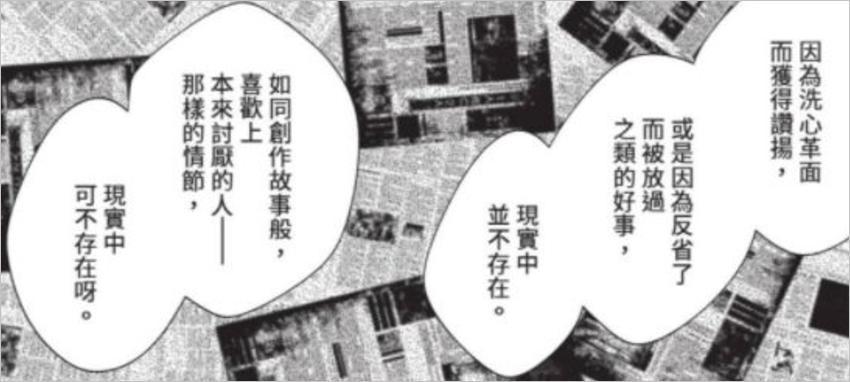 看到漫畫家貶低的話,聯想到她女兒爲了還原漫畫角色做出的一系列努力,爲了讓一切不用荒唐結尾,橋本悠真情流露,借用男主的嘴打了整整四頁嘴炮。